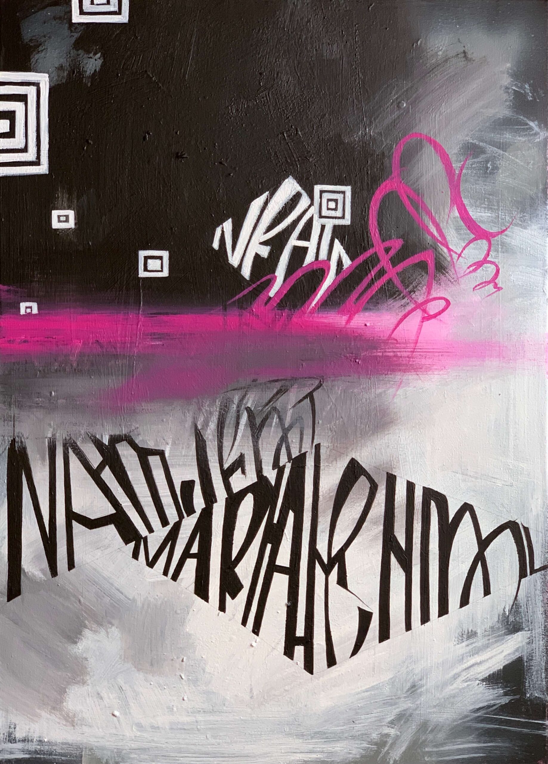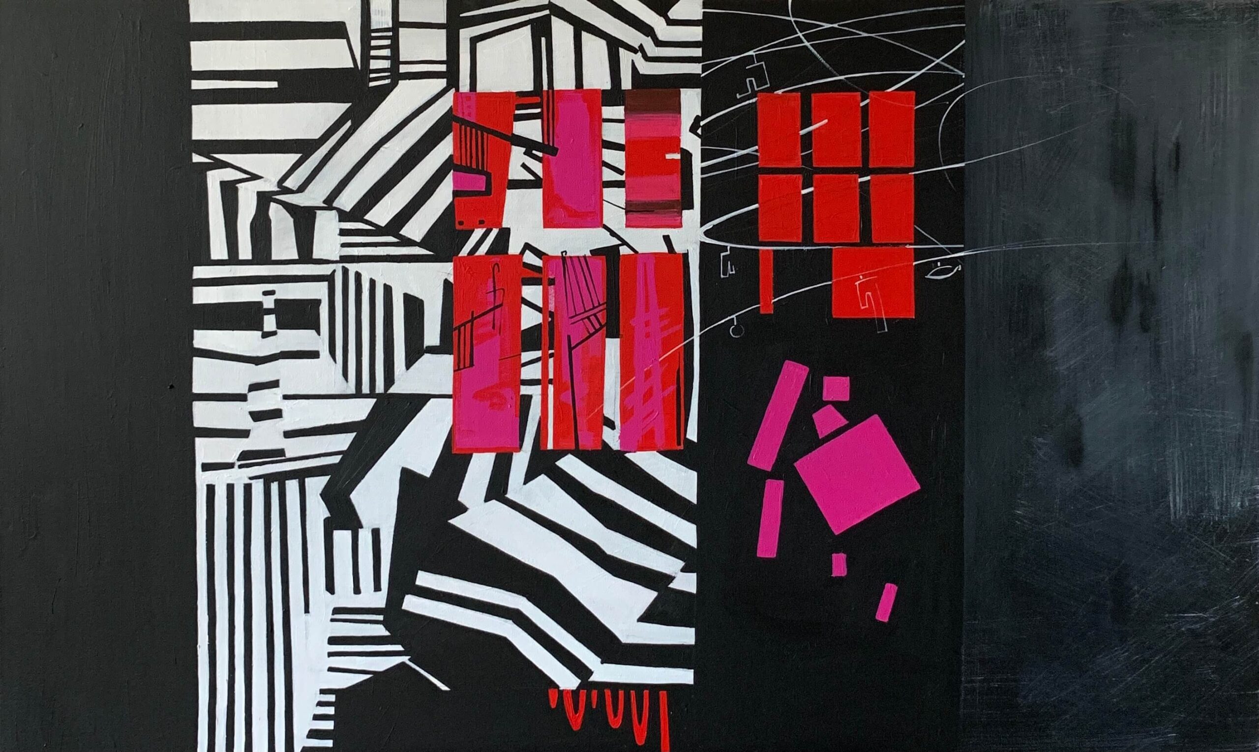 Напруга чорно-білих смуг,динамічний рух ліній,контрастність кольору-перенесення сучасного прискореного життя,якого вимагає час.Чорно білі смуги-контрастні по кольору та по трактуванню.Це символічний життєвий контраст.Адже життя -це чергування подій,людей,ситуацій,як добрих так і поганих. І все це не просто так,адже без чорної смуги нам не видавалася б такою світлою та яскравою біл